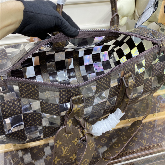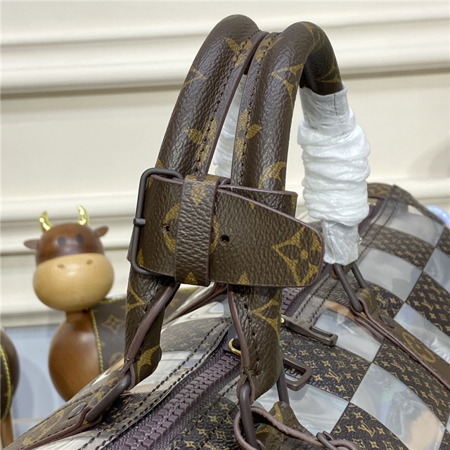 This new “Monogram Chess” version of the Keepall for Fall-Winter 2022 is an ode to designer Virgil Abloh’s creative vision: Louis Vuitton’s heritage Damier pattern is reinterpreted in alternating squares of Monogram canvas and crystal-clear PVC. And as always, it’s a practical travel bag, ideal for an overnight trip or as an extra carry-on.
