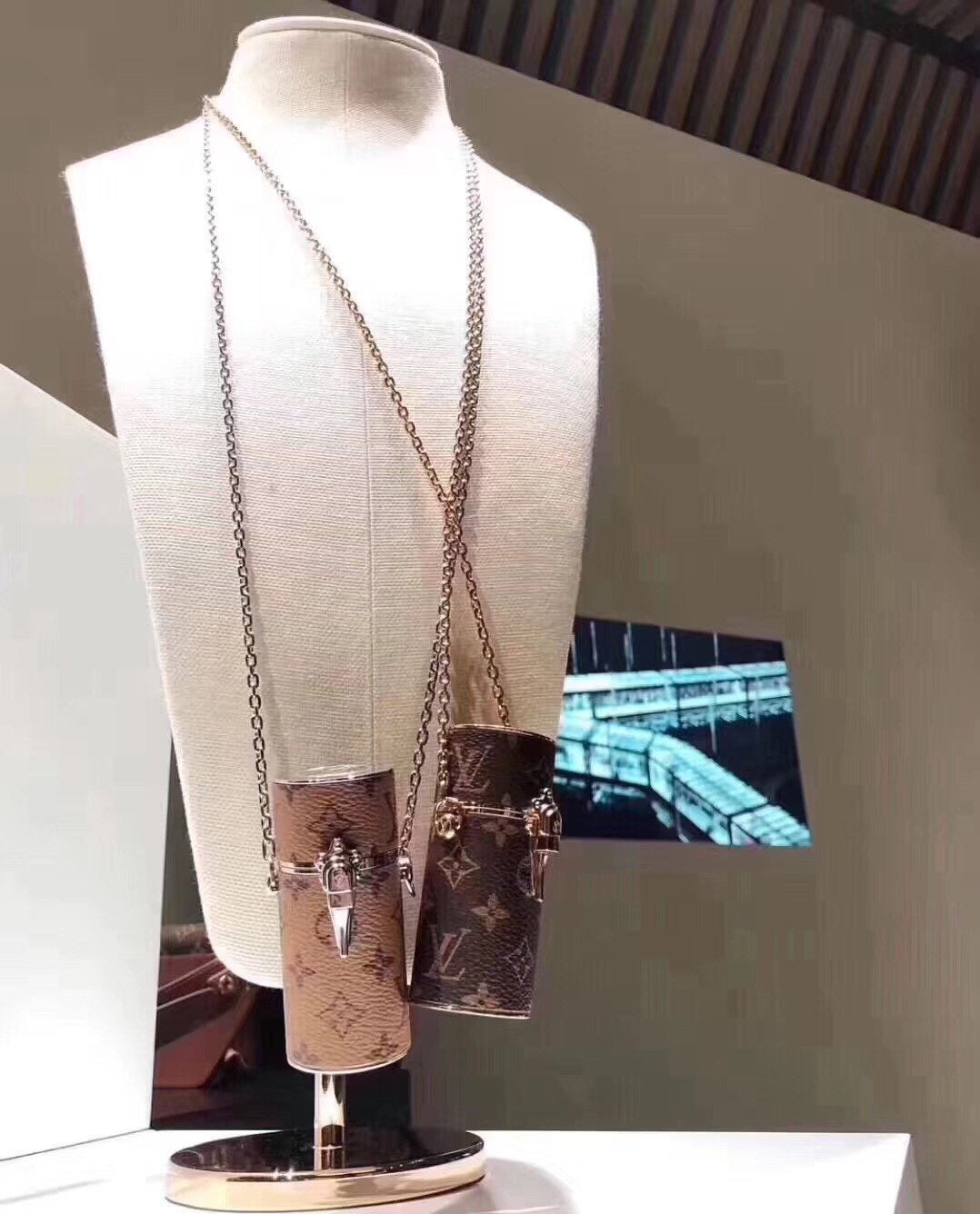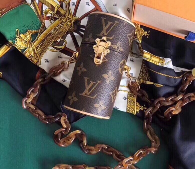 Iconic Monogram canvas and an Art Deco shape combine to create this elegant lipstick case. Inspired by 1920s makeup boxes, this piece features a lock inspired by historic Louis Vuitton trunks and is delicately engraved with an LV Circle logo. This compact accessory can be worn as a jewelry or to adorn the outside of a favorite bag.