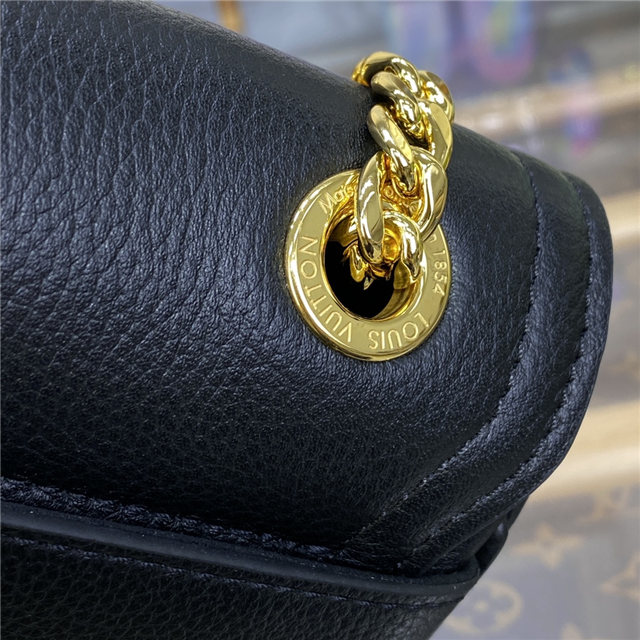 Made from grained calfskin leather, the LockMe Chain Bag East West, with its urban 90’s vibe, is the latest newcomer to the list of day-to-evening wardrobe essentials. Its compact proportions, sliding gold-color chain, and LV Twist lock bring sophistication to the bag. It can perfectly fit daily belongings such as a wallet or phone.