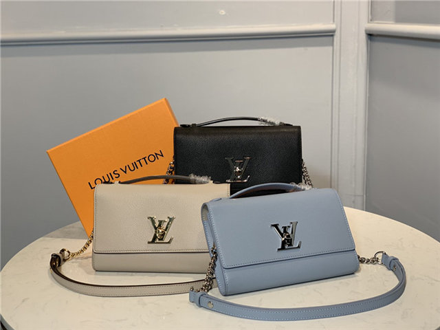 With its iconic LV turn lock and leather top handle for clutch carry, the Lockme Clutch is a striking day-to-evening bag. It boasts a clever strap with press studs to easily adjust the length for shoulder or cross-body carry. The small chain at the end of the strap brings a precious touch for evening occasions.
