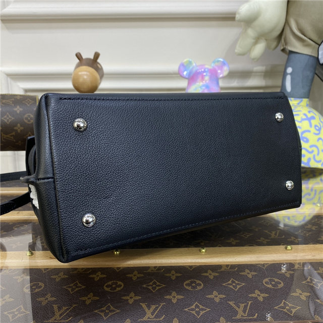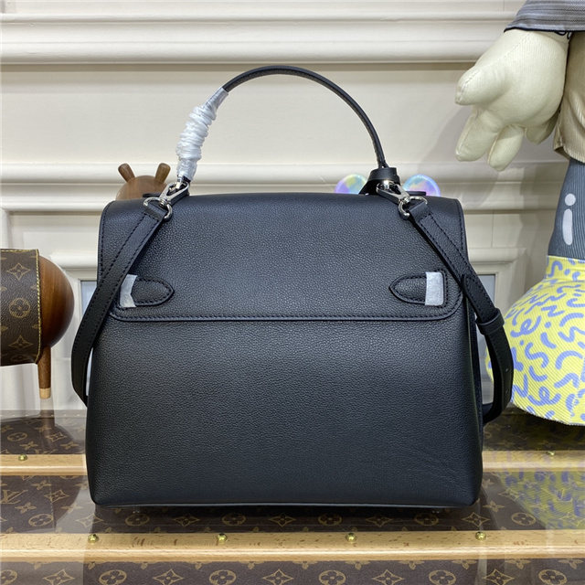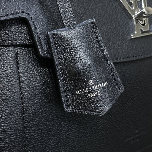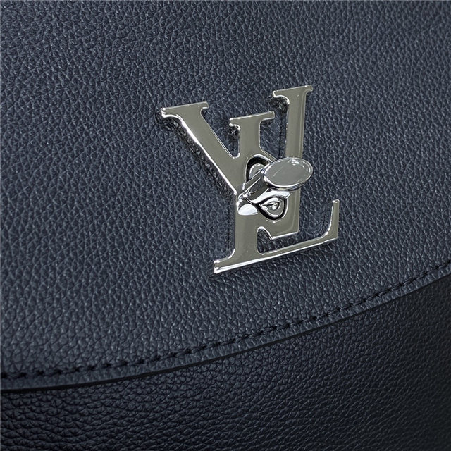 The one-handle Lockme Ever model in soft calfskin sports a sleek, structured shape. The graphic lines of the top flap give this supple, roomy bag a modern attitude. Accented with a silver-finish LV turn lock and furnished with a leather strap for hands-free ease, it is an elegant choice for daily wear.