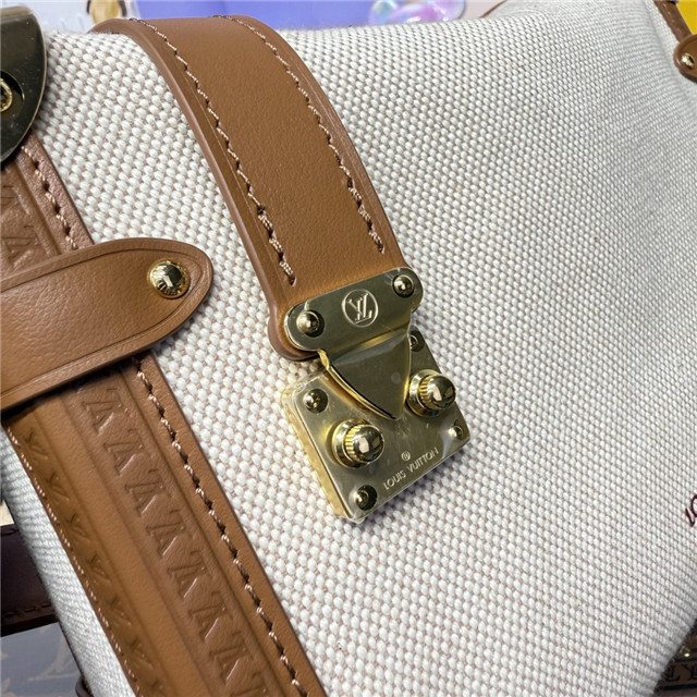 The Natural Canvas collection introduces this lightweight edition of the timeless Side Trunk MM, perfect for the season ahead. It is crafted from cotton canvas trimmed with contrasting leather and is adorned with a signature S-lock and trunk-inspired corners in a golden finish. The elegant design comes with a removable strap for shoulder and cross-body carry and is sized to fit everyday essentials.