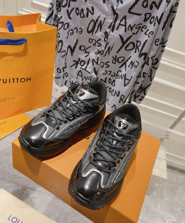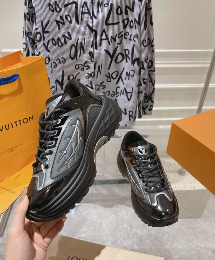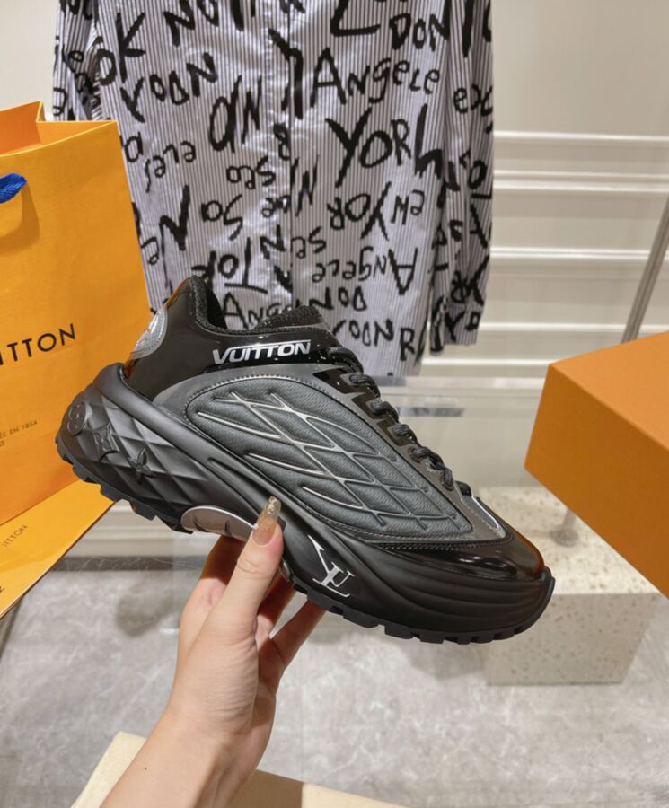 Seen on the runway at Louis Vuitton’s Fall-Winter 2023 show, the LV Discovery lace-up is an avant-garde style combining technical mesh and synthetic materialswith metallic-finish. Its streamlined design is complemented by numerous signature details, both on the upper and on the extremely lightweight rubber outsole. Technical laces complete this model.