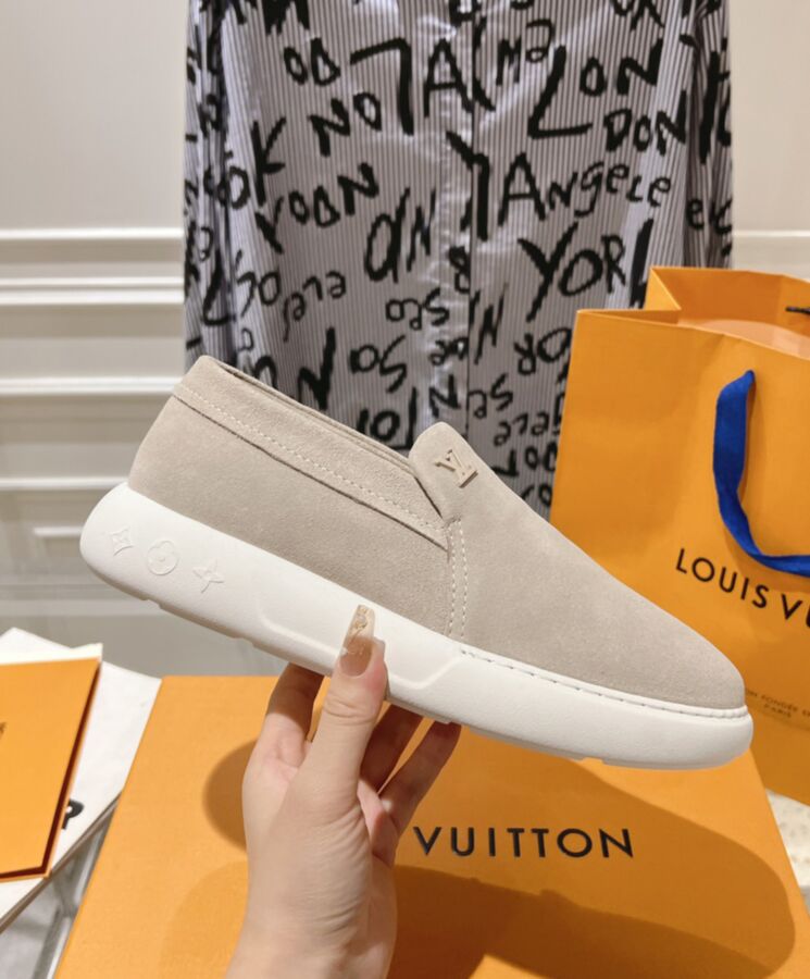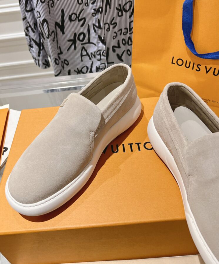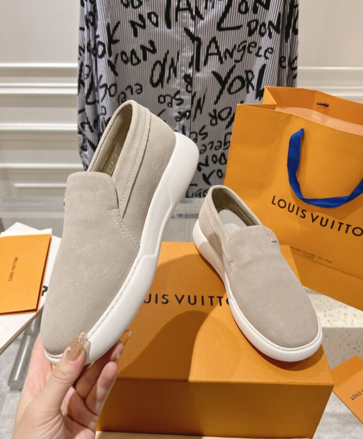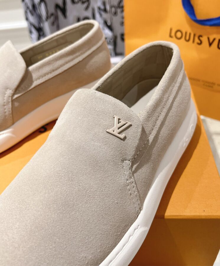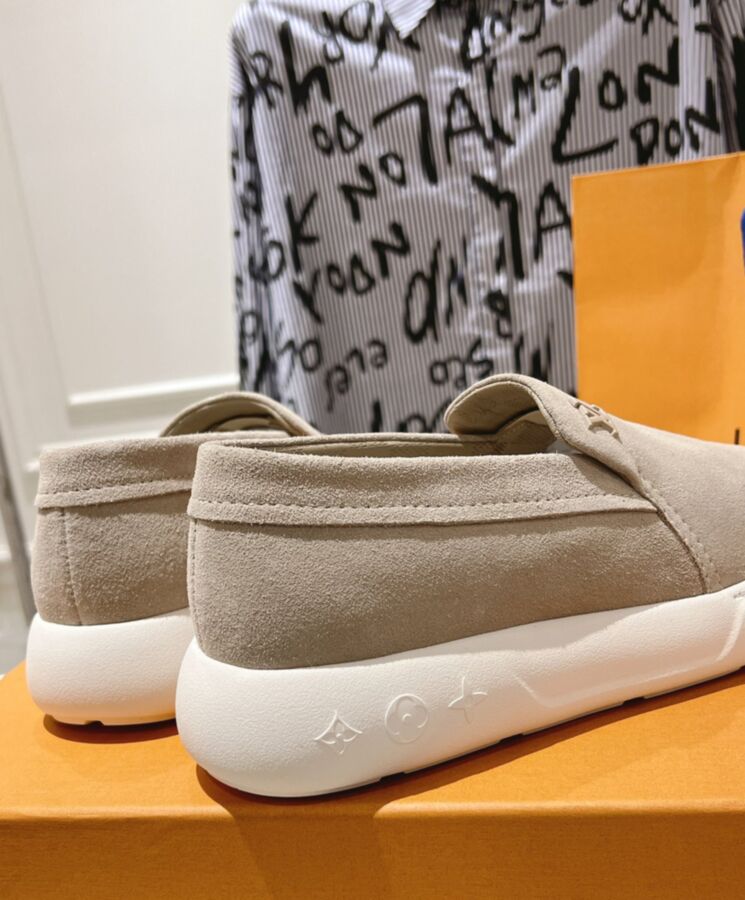 The LV Pacific loafer is a casual-chic style in soft suede calf leather. Its slip-on design and lightweight, bouncy rubber outsole give it a relaxed, easy feel. The upper is discreetly signed with a tonal LV Initials logo, while the outsole is decorated with three Monogram Flowers.