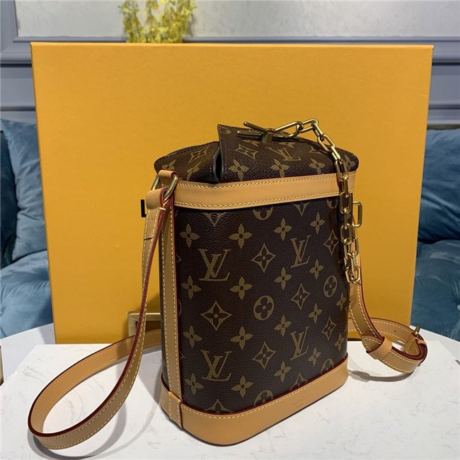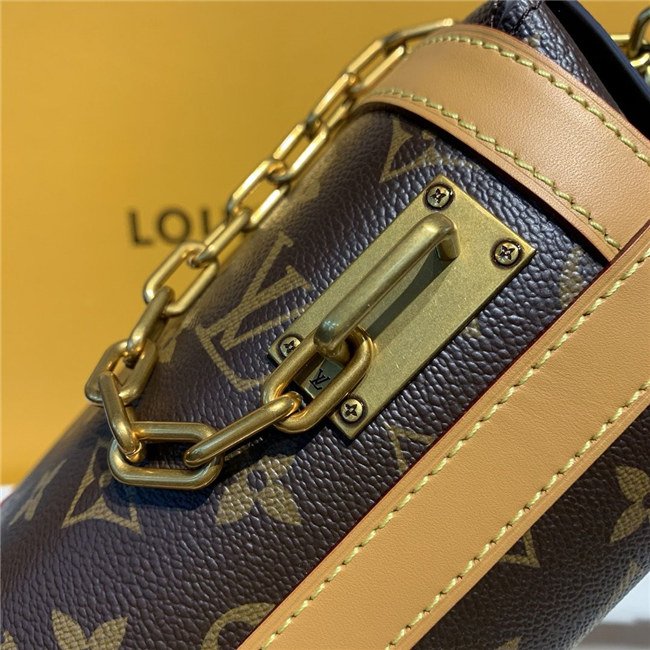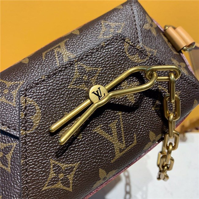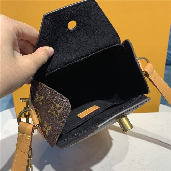 With a shape inspired by Louis Vuitton’s Mini Noé, the Milk Box bag in Monogram canvas and natural leather trim is part of Virgil Abloh’s tribute to the House’s design legacy. The bag’s unique opening and gold-tone pin-and-chain closure bring an unconventional edge.
