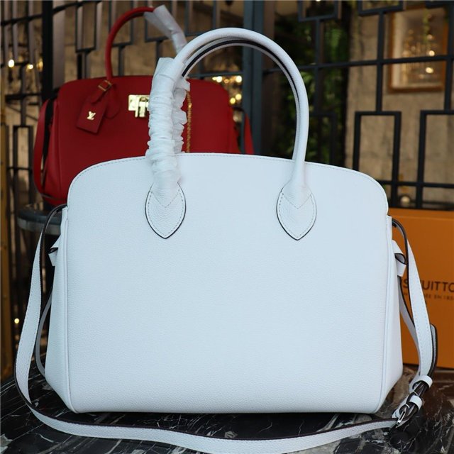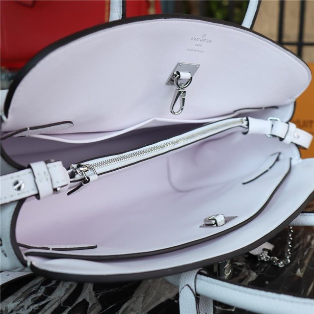 The ultra-luxe, ladylike Milla MM handbag is fashioned from supple Veau Nuage calfskin, accented with refined signatures. The metal lock, rivets and leather side bows are all inspired by features of original Louis Vuitton trunks. A roomy, sophisticated daily companion, the Milla can be carried in any number of ways, thanks to its twin top handles and a removable strap.