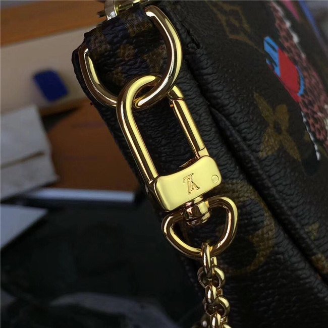 Whether it is clipped to another bag or carried independently, the Mini Pochette Accessoires is a playful addition to any wardrobe. The cute giraffes with their iconic Louis Vuitton bags bring a sense of playfulness to this functional pouch.