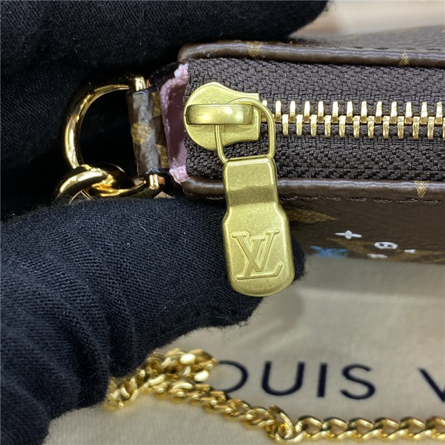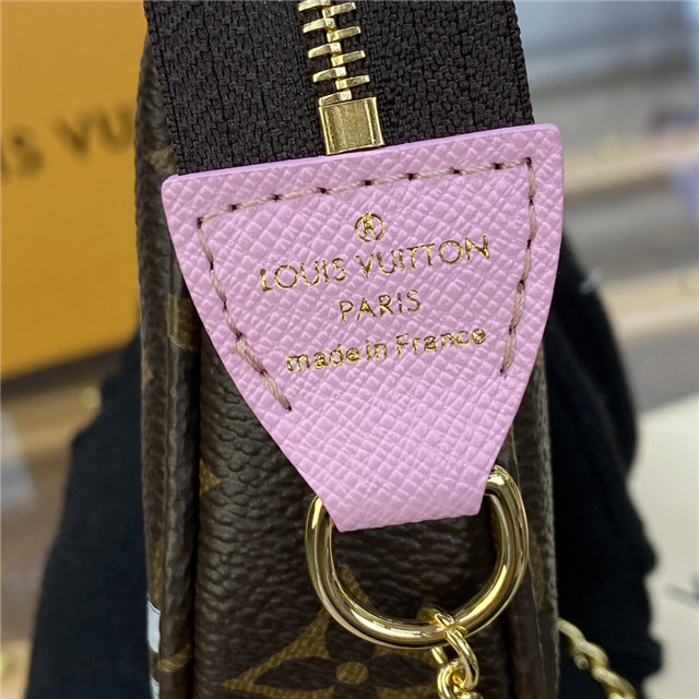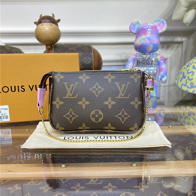 This special edition of the Mini Pochette Accessoires belongs to the Vivienne Holidays 2022 collection, which references Louis Vuitton”s travel heritage. Crafted from Monogram canvas, it features an exclusive print showing the House”s Vivienne mascot in front of the Paris boutique on Place Vend?me. An ideal gift, this stylish mini pouch is complemented by a pink textile lining.