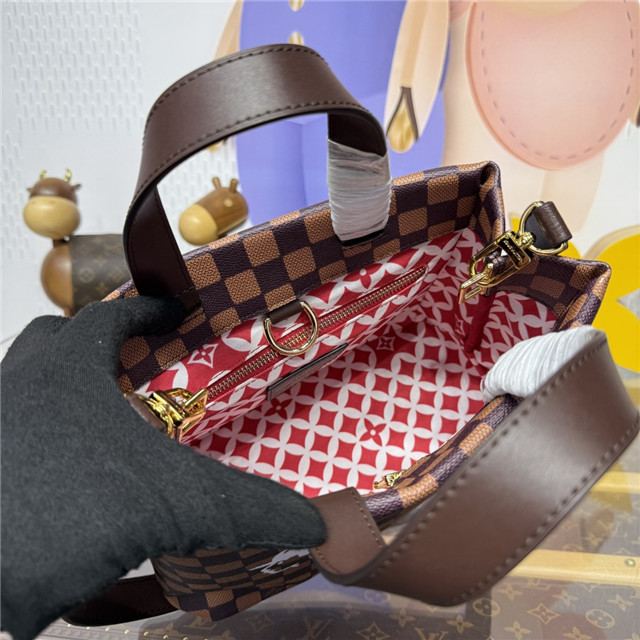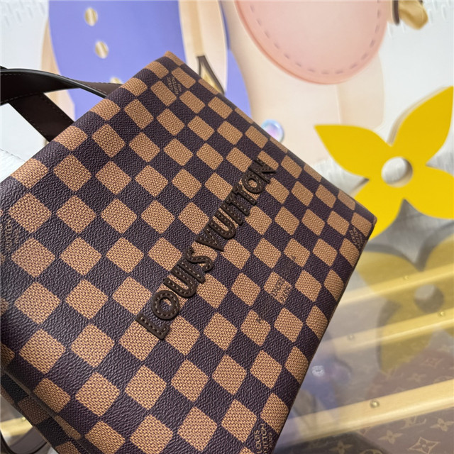 The Mini Shopper Tote is a small carry-all inspired by the design of the classic Louis Vuitton shopping bag. Crafted from Damier Ebene coated canvas, the bag features the faces of Pharrell Williams and Nigo, the Japanese designer who collaborated with Williams on the Fall-Winter 2025 collection.