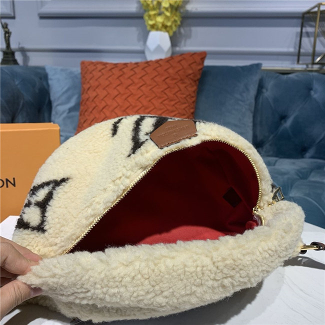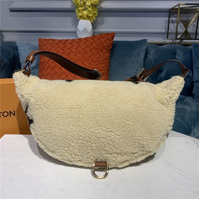 Louis Vuitton’s on-trend Bumbag is revisited in super-soft shearling for the Monogram LV Teddy limited edition. Demonstrating the House’s leather-goods knowhow, the Monogram pattern is recreated in brown and crème beige using an elaborate intarsia technique. The bag’s fluffy look and super-soft feel further enhance its fashion appeal.