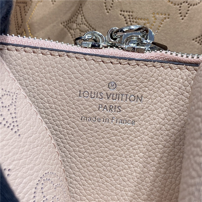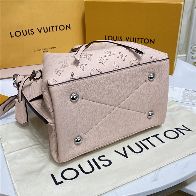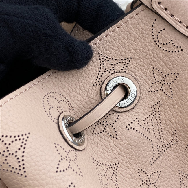 The Muria bucket bag is made from Mahina calf leather with a perforated Monogram pattern in a metallic sheen. It features both a braided top handle and a long adjustable leather strap for short- and long-shoulder carry as well as cross-body wear. Its leather name tag and key bell bring an added touch of sophistication.