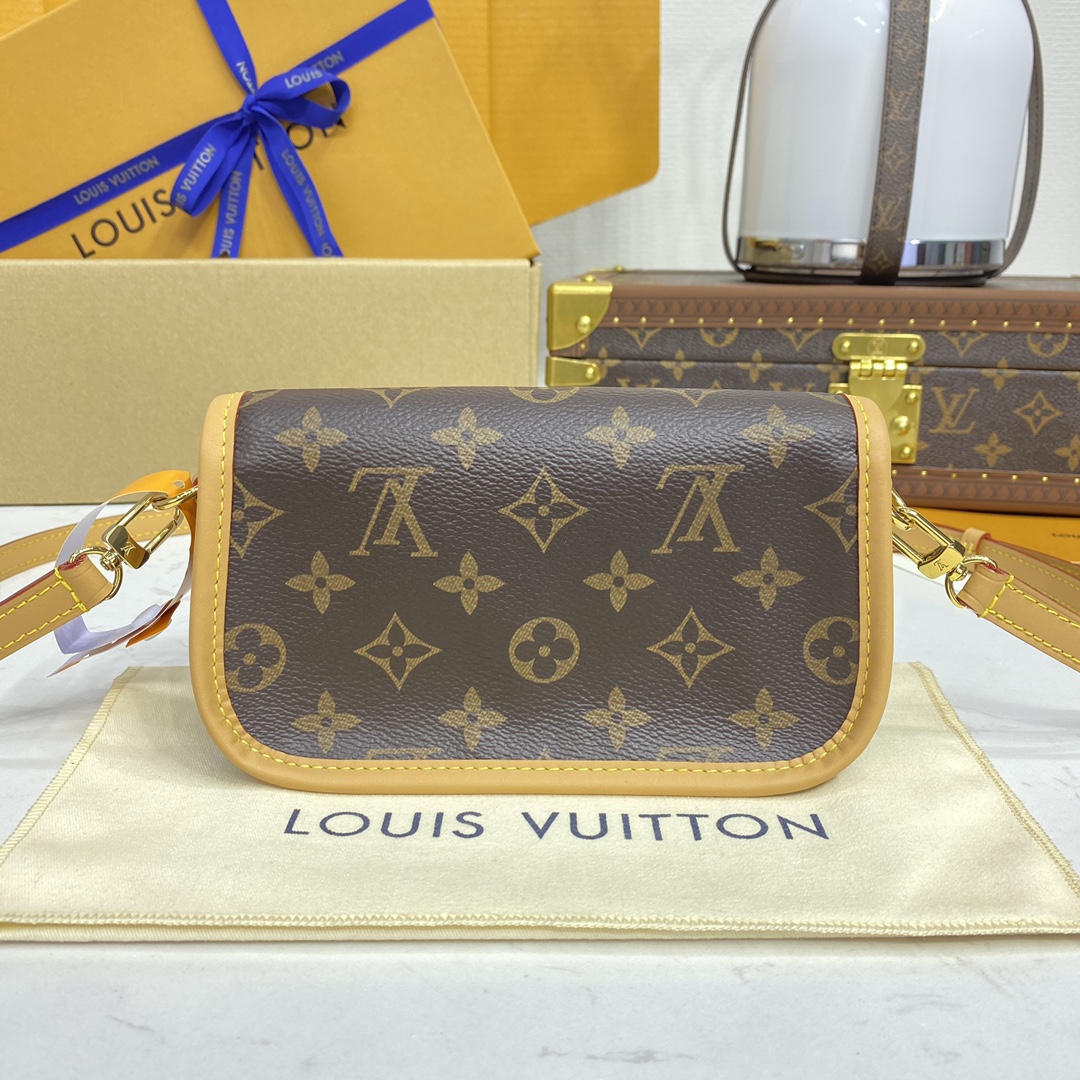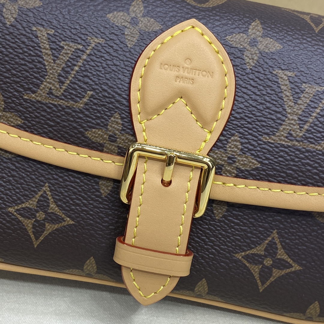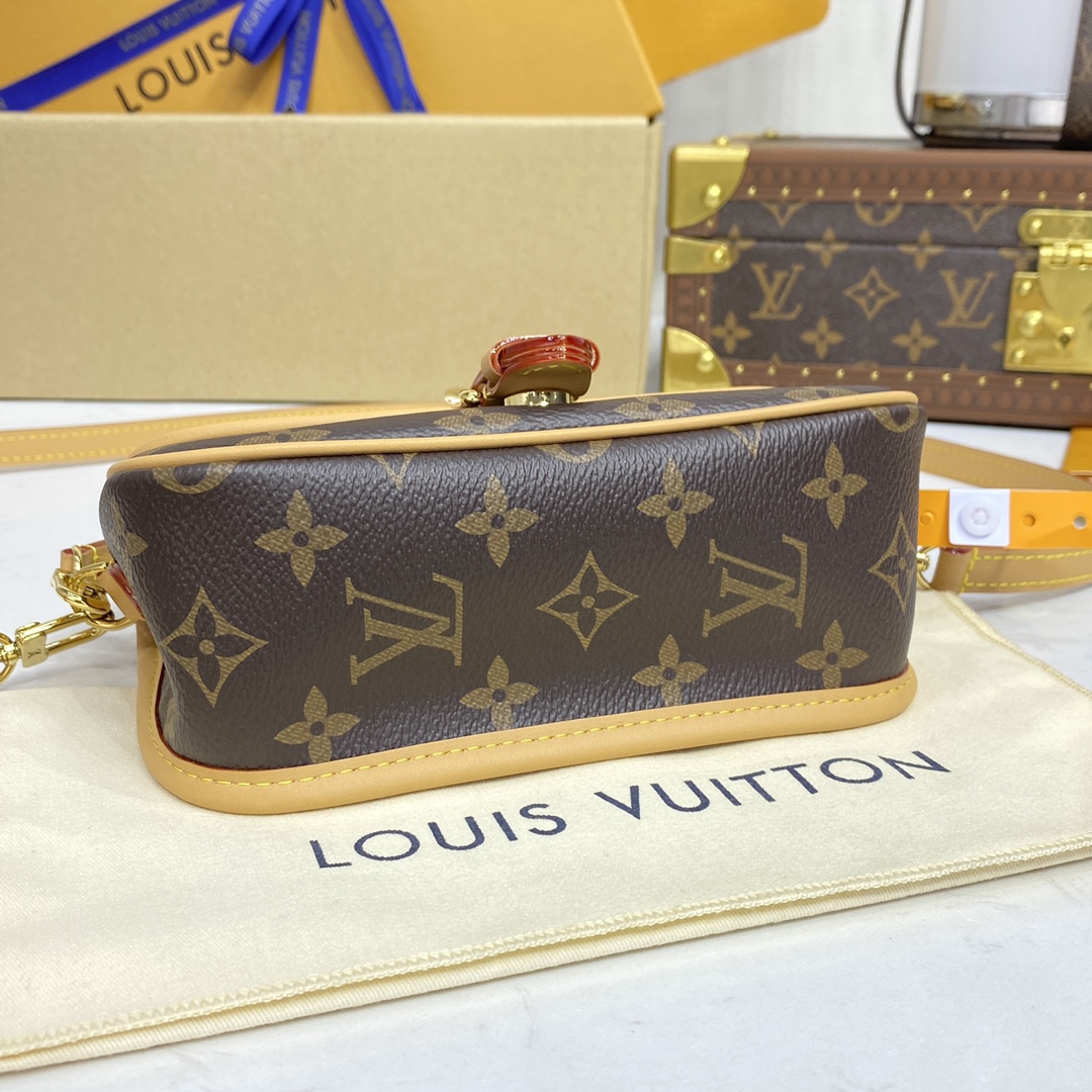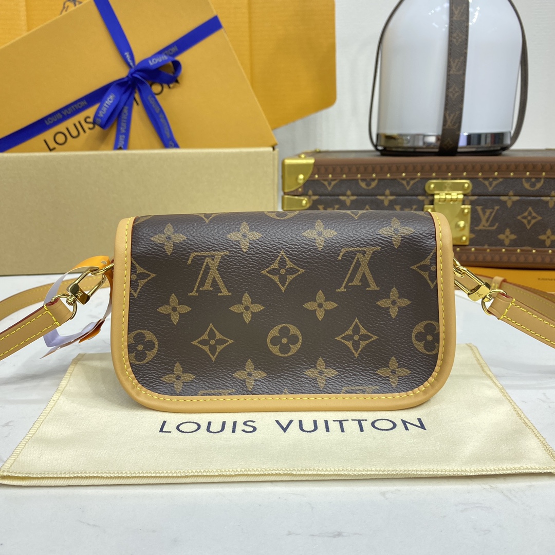 A miniature version of the Diane bag, the Nano Diane comes in Louis Vuitton’s iconic Monogram canvas. Ideal for essentials including a phone, this model is complemented by natural leather trim, which highlights its distinctive rounded flap and magnetic, belt-style closure. A removable handle and removable, adjustable shoulder strap offer different carry options.