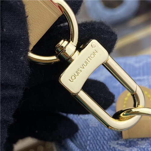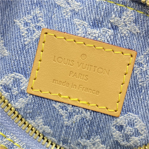 This summery iteration of the Nano Speedy bag comes in pure cotton denim, which is first woven with the Monogram pattern, then bleached and stonewashed to create a fashionable vintage look. The denim is complemented by natural leather with a subtly aged appearance on the bag””s two handles and removable, adjustable shoulder strap.