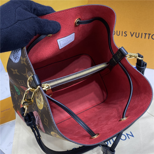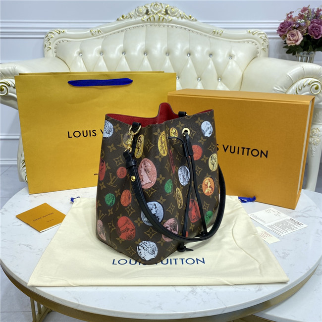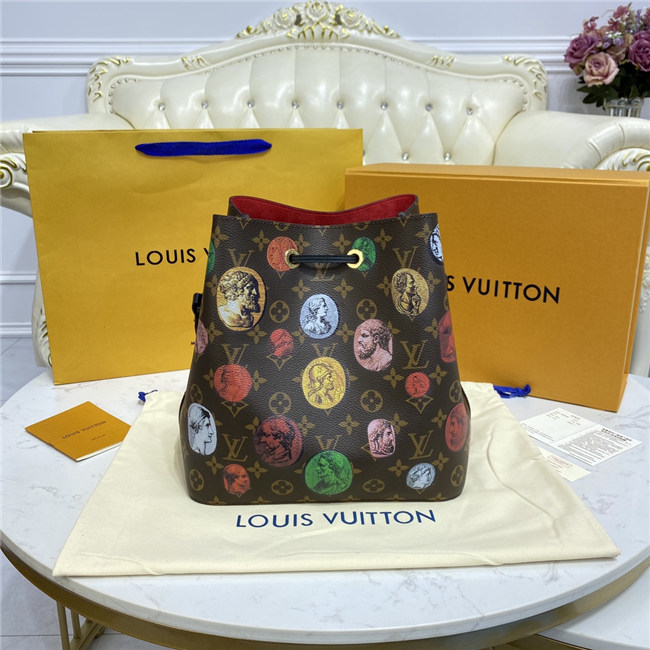 The NéoNoé MM bag is presented this season in an exclusive print created for the LVxFornasetti capsule collection. Ancient coins inspired the vividly colored cameos that overlay the iconic Monogram canvas. The illustrations are exquisitely rendered in the unmistakable style of the Fornasetti design atelier, for an eye-catching version of the Maison’s classic bucket bag.