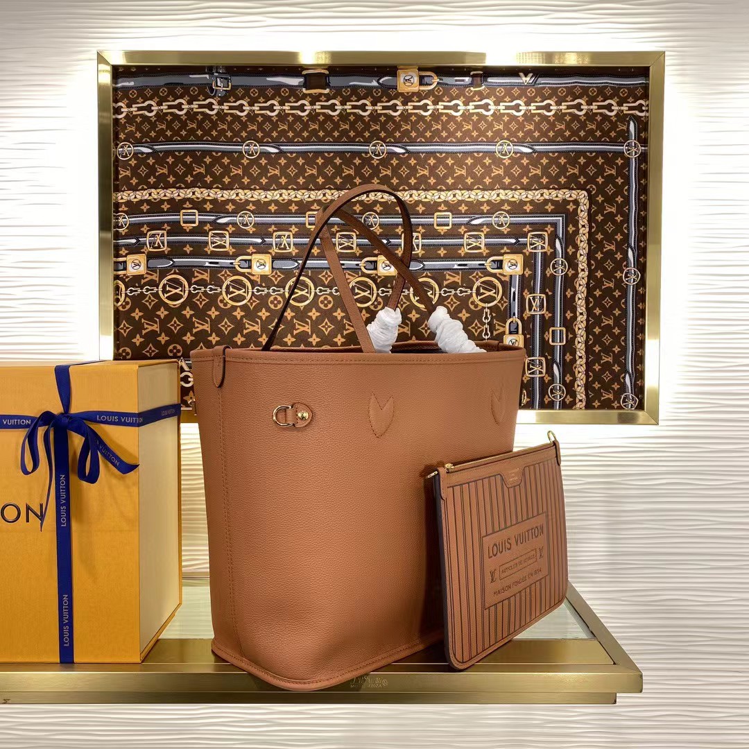This versatile edition of the Neverfull Inside Out MM showcases a new reversible design. One side is crafted from signature Monogram canvas, and the other reveals grained leather. The iconic style also includes a removable pouch that can be used on its own, or attached as an exterior pocket.