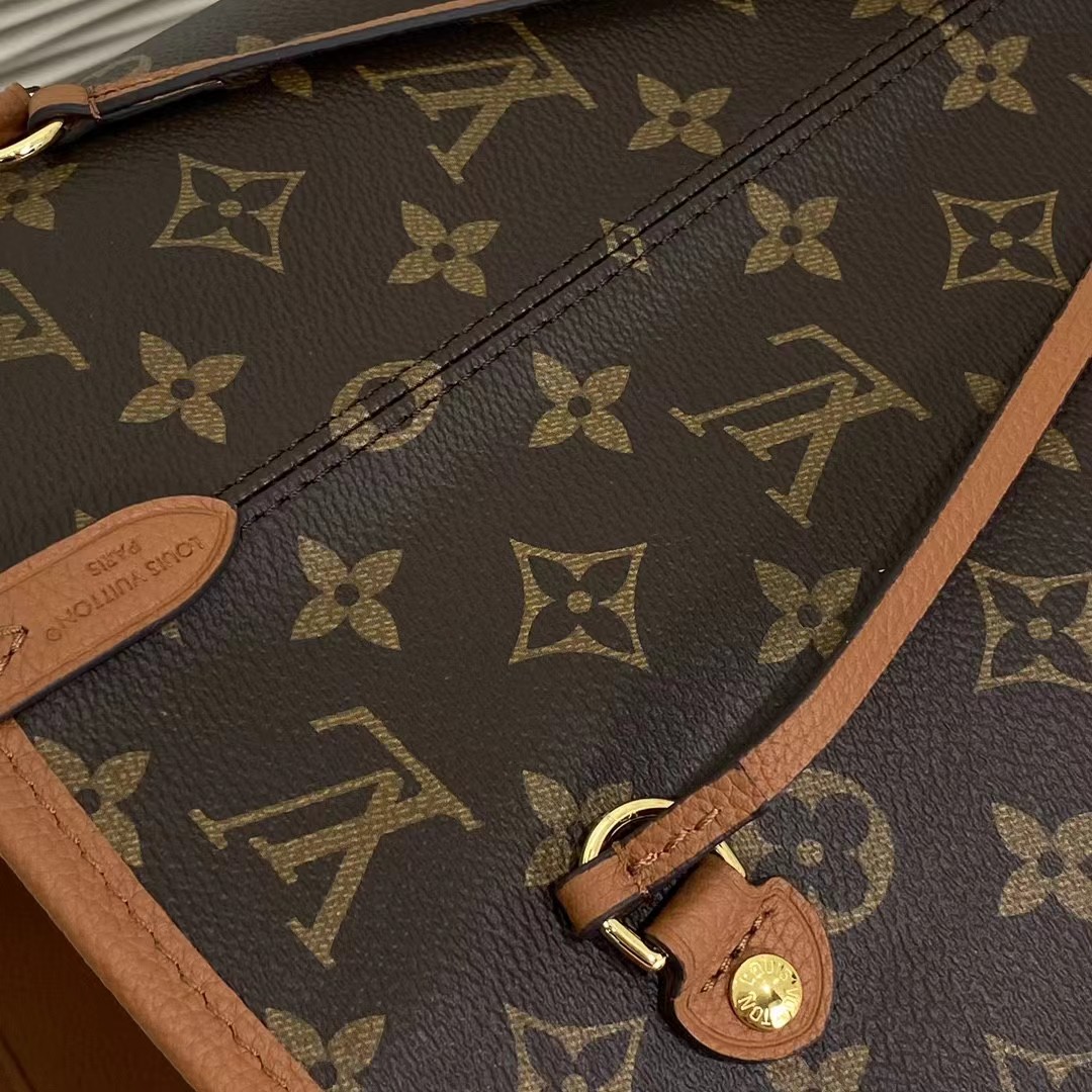 • Tan Cowhide Leather/Monogram Coated Canvas