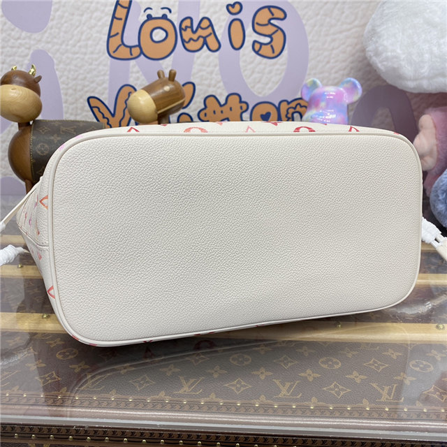 This Neverfull MM tote bag is made from Monogram Empreinte Sunrise Aquarelle leather. This distinctive gradient treatment of the orange, pink and fuchsia printed on top of the Monogram embossing brings a joyful feel. To enhance the texture, a hint of glossiness is screen-printed onto the surface, making it glisten like morning dew.