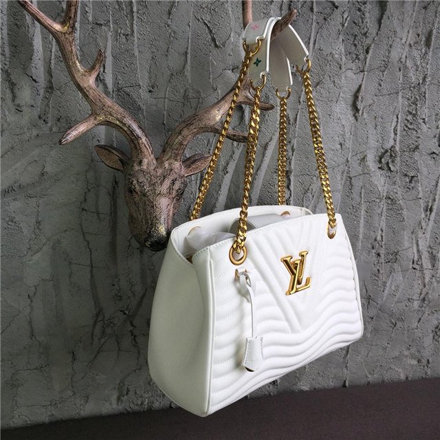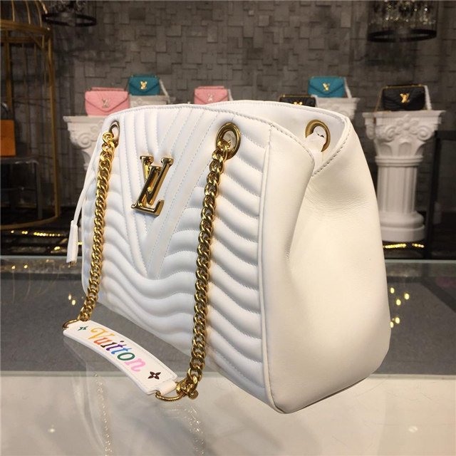 The Louis Vuitton New Wave Chain Tote in soft calf leather is both on-point and practical: with its luxe quilted detailing and aged-metal hardware, it will dress up any ensemble, while accommodating a full day’s essentials. The sliding-chain handle of this light, body-friendly bag can be adjusted for short or long shoulder carry.