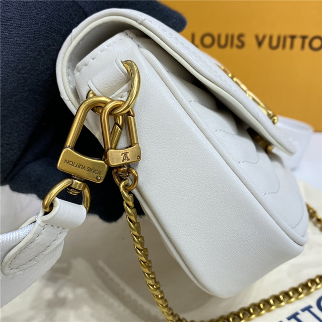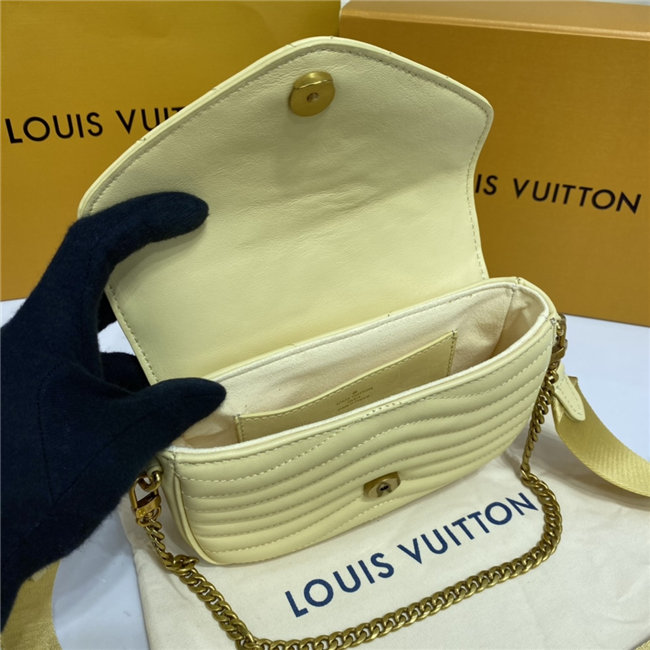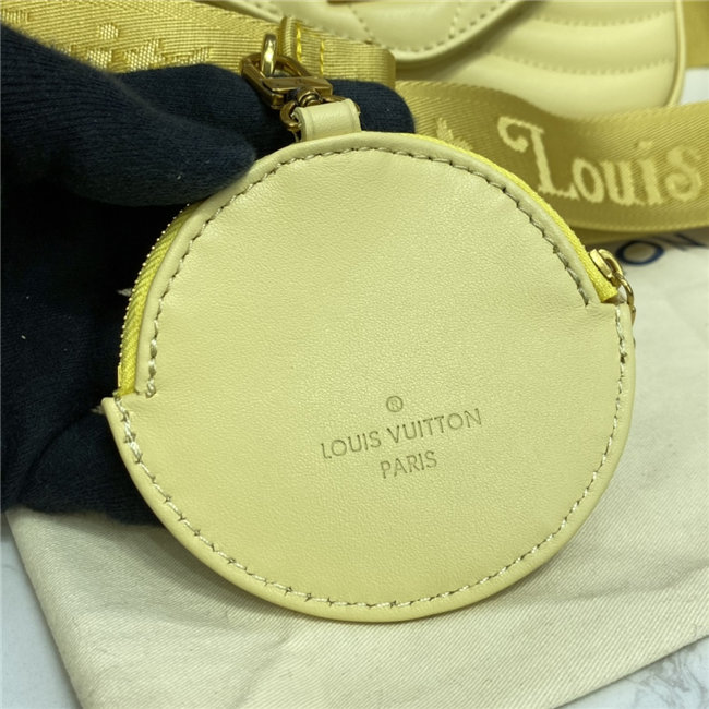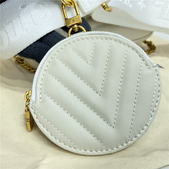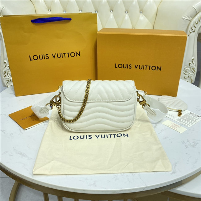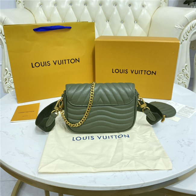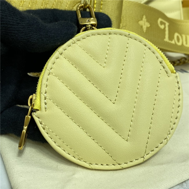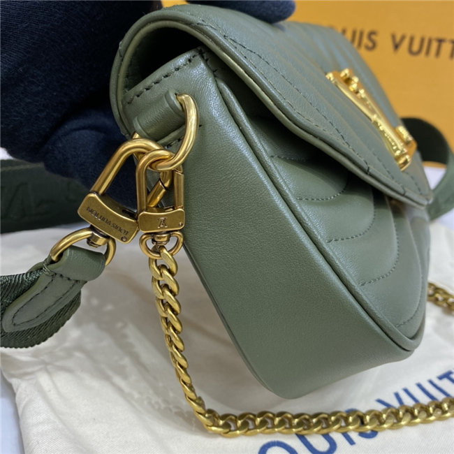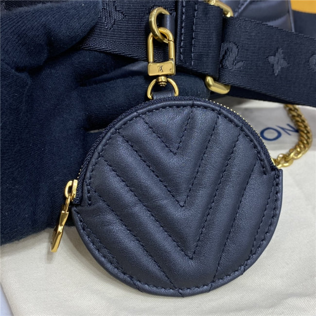 Louis Vuitton introduces the versatile New Wave Multi-Pochette crossbody handbag in quilted cowhide leather. With its wide strap, featuring an embroidered “Louis Vuitton” signature, gold-color chain for hand or short shoulder carry, and round coin purse clipped on the strap’s snap hook, all removable, it is the very definition of a versatile fashion accessory.