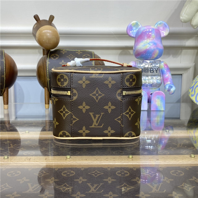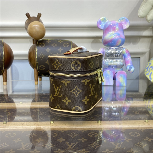 Small and surprisingly roomy, the Nice Nano vanity case can be used to store beauty essentials like nail polish or lipstick in a bathroom, or as a bag inside a bag to keep small items organized. Fashioned from Monogram canvas with a top handle that flattens for easy packing, it easily fits into even tight spaces.