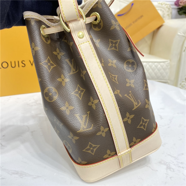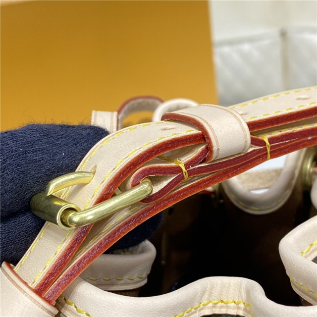 the Noe in Monogram canvas sports the original’s signature leather drawstring,