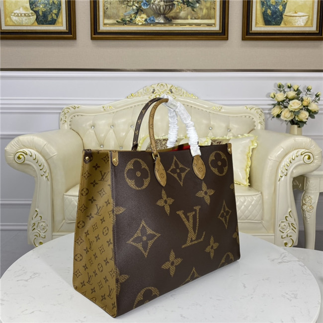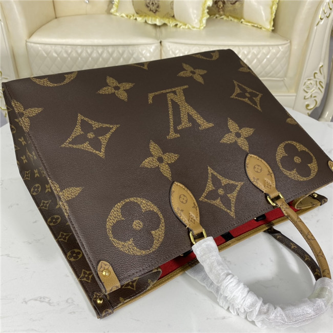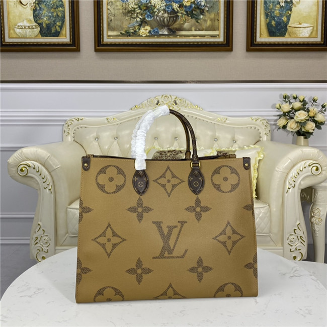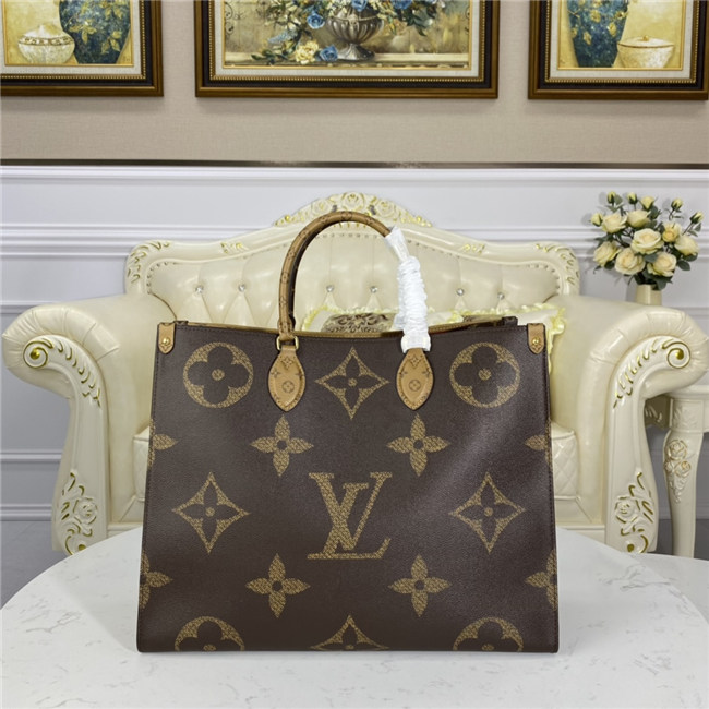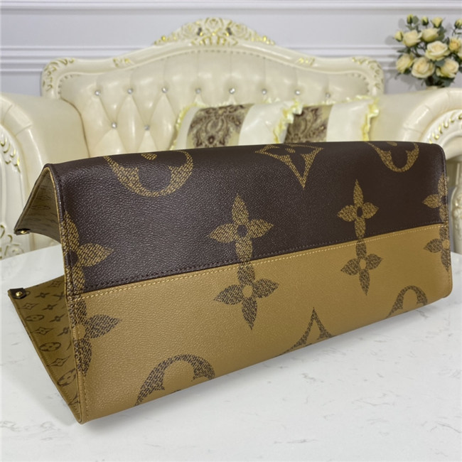 Fashioned from Monogram Giant canvas, the OnTheGo GM tote bag is as striking as it is practical. A Monogram Reverse pattern on the sides and handles creates a stylish contrast in color and scale. With its generous capacity, shoulder straps and iconic Toron top handles, this versatile GM model is an ideal bag for everyday wear.