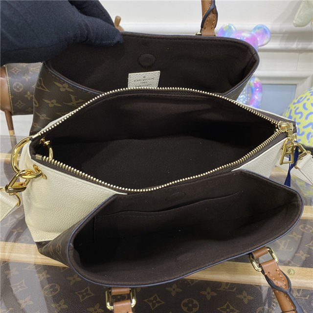 With its immediately recognizable combination of Monogram canvas and grained and smooth leathers, the Opera BB tote is classic Louis Vuitton. The design is stylish and functional and includes small ornamental rivets on the rolled-leather top handles and heritage-inspired leather handle mounts. The bag is large enough for essentials such as an iPad.