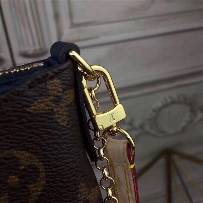 The unique design of Monogram canvas matched with supple grained leather makes this a versatile day-to-night bag with style. It boasts a golden chain for short-shoulder, long-shoulder and cross-body carry!