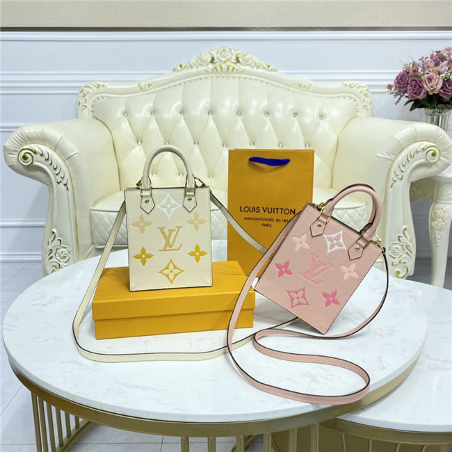 The Petit Sac Plat is revisited in embossed Monogram Empreinte leather with a subtle color gradation as part of the Summer 2021 By The Pool collection of accessories, leather goods and ready-to-wear. This miniature replica of the iconic Sac Plat is lightweight and surprisingly spacious. It can be carried on the shoulder, across the body or in the hand.