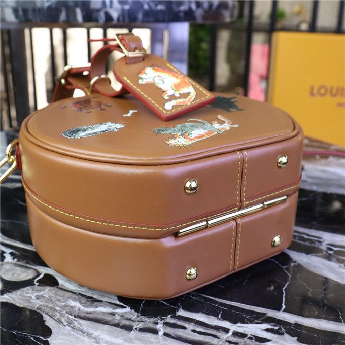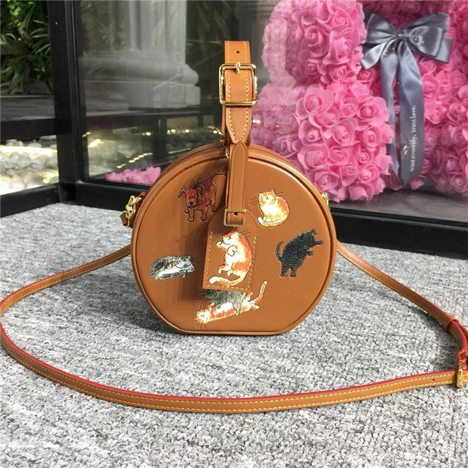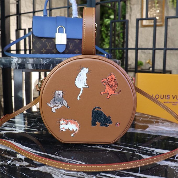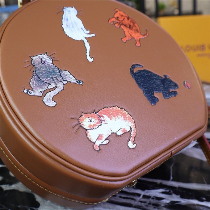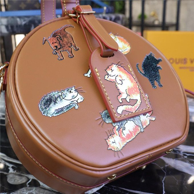 Nicolas Ghesquière and Grace Coddington dreamed up this fun version of the Petite Boite Chapeau bag for the Cruise 2019 collection. The top-grade calfskin is dotted with colorful cats and dogs. A trendy, versatile bag with an audacious aura.