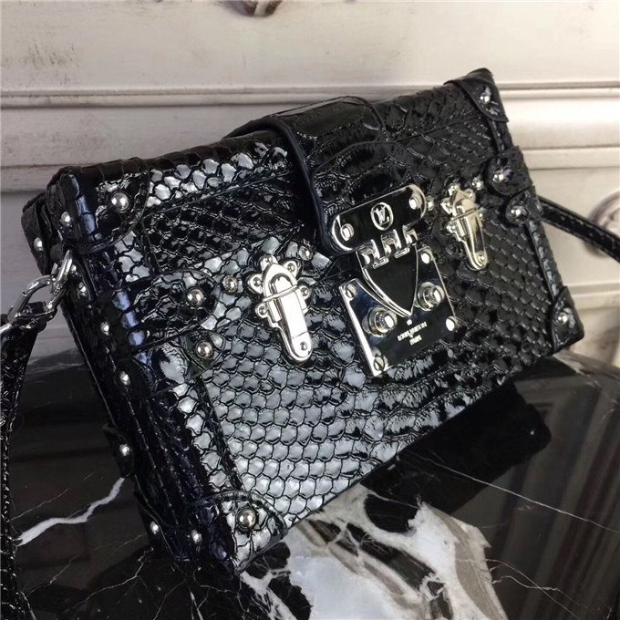 The Petite Malle in precious python skin beautifully mixes Louis Vuitton craftsmanship with a bold, stylish statement. Reflecting the Maison’s heritage in trunk-making, this little jewel is timeless and perfect for day to night chic. The elegance of the Python skin leather makes it even smarter.