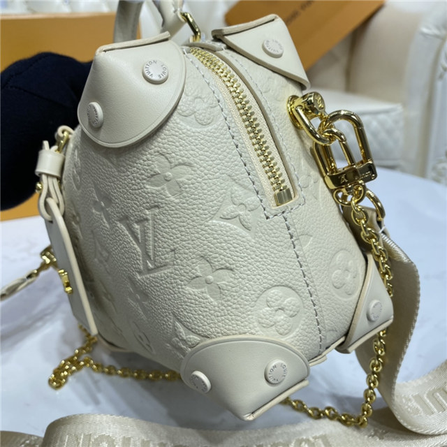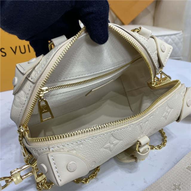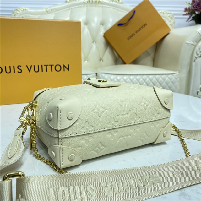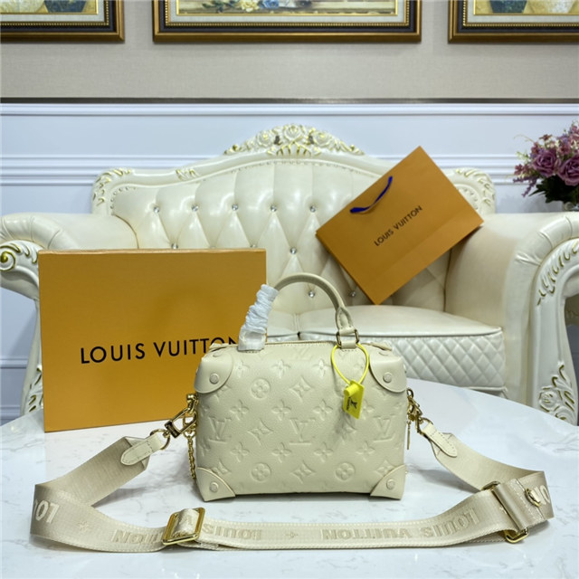 Fashioned from embossed Monogram Empreinte leather, the Petite Malle Souple handbag is a soft-sided version of the now-classic Petite Malle. With its LV luggage tag and riveted leather corners, it is tribute to the House’s trunk making heritage. It has a wide removeable strap, in addition to its top handle, and a practical inside zipped pocket.