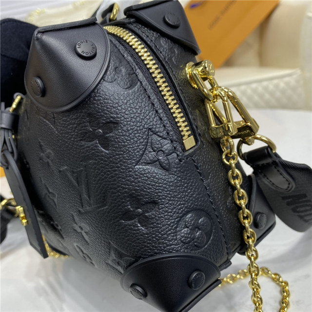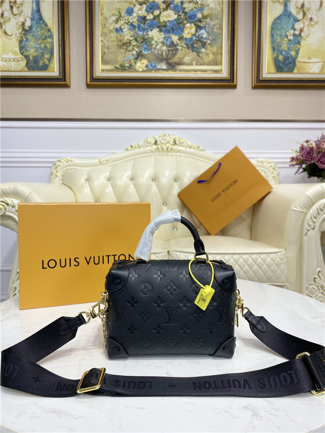 Fashioned from embossed Monogram Empreinte leather, the Petite Malle Souple handbag is a soft-sided version of the now-classic Petite Malle. With its LV luggage tag and riveted leather corners, it is tribute to the House’s trunk making heritage. It has a wide removeable strap, in addition to its top handle, and a practical inside zipped pocket.