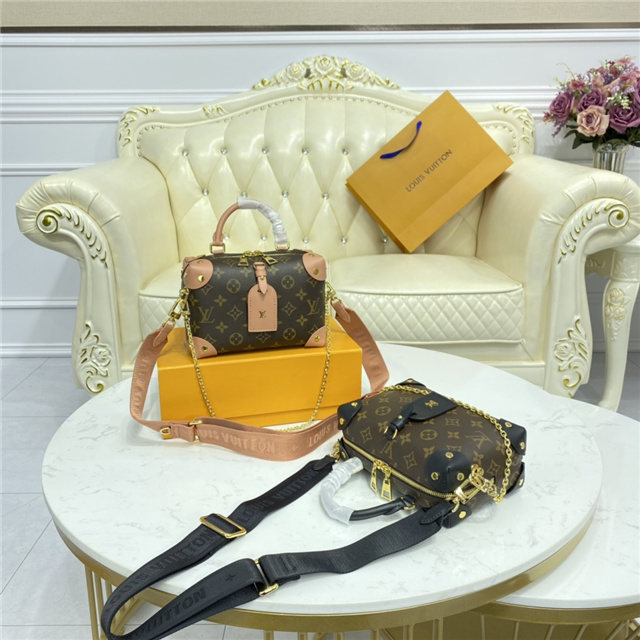 The distinctive Petite Malle Souple is a soft handbag steeped in the House history. The Monogram canvas, riveted leather corners, and leather name tag all evoke Louis Vuitton’s legacy as a trunk maker. A gold-color nautical chain and wide removable strap, with Louis Vuitton Malletier embroidered on it, bring up-to-the-minute style.