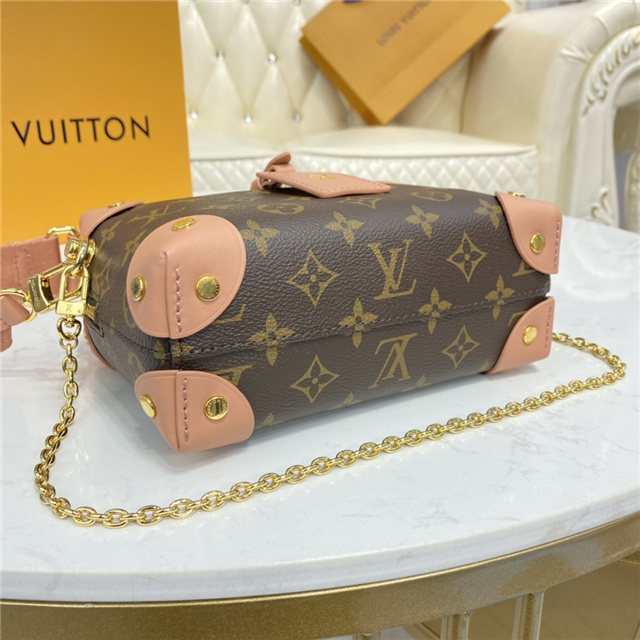 The distinctive Petite Malle Souple is a soft handbag steeped in the House history. The Monogram canvas, riveted leather corners, and leather name tag all evoke Louis Vuitton’s legacy as a trunk maker. A gold-color nautical chain and wide removable strap, with Louis Vuitton Malletier embroidered on it, bring up-to-the-minute style.