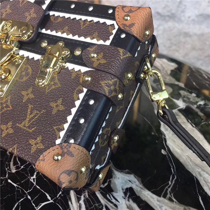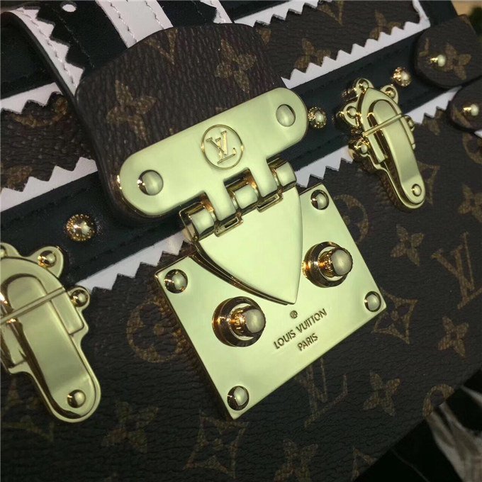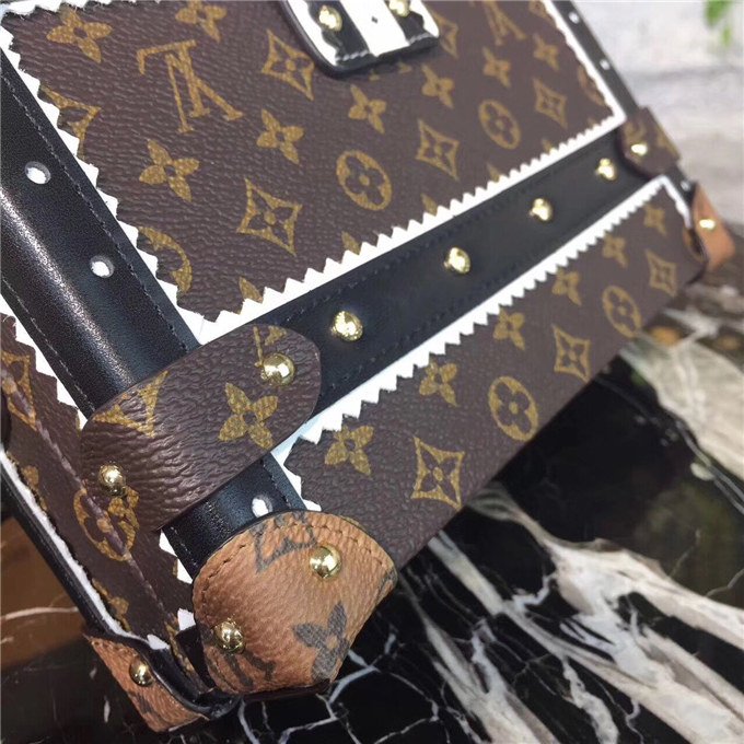 Nicolas Ghesquiere continues to explore the essence of Parisian elegance for Fall-Winter 17 by transposing the classic brogue pattern to the Petite Malle. The striking combination of decorative perforations and leather with Monogram canvas gives a timeless and modern attitude.