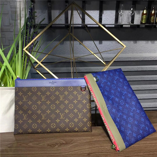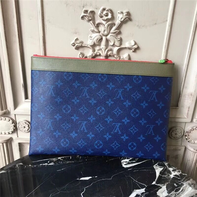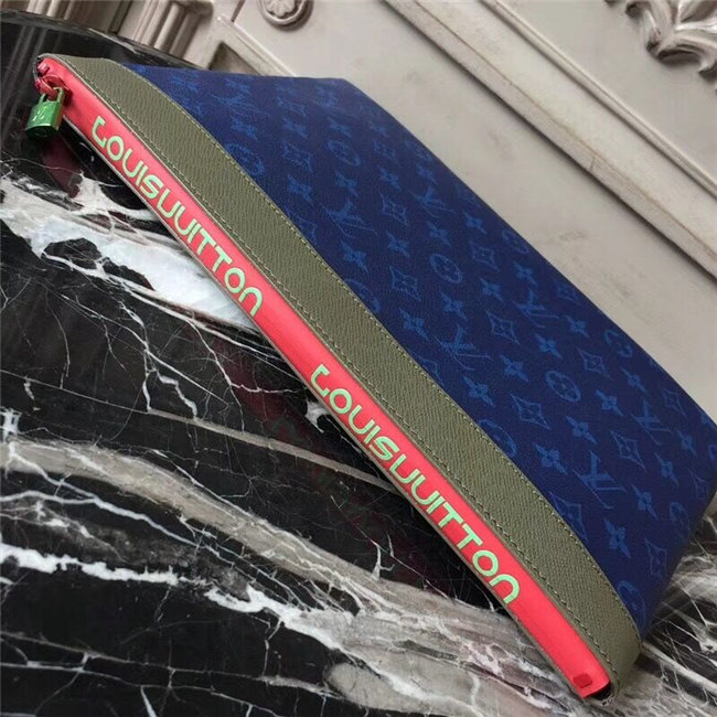 Featuring the technical, sports-inspired feel unveiled by Kim Jones at the 2018 Spring-Summer Show, this Pochette Apollo mixes Monogram Pacific canvas and Taiga leather with colored hardware based on climbers carabineer clips.