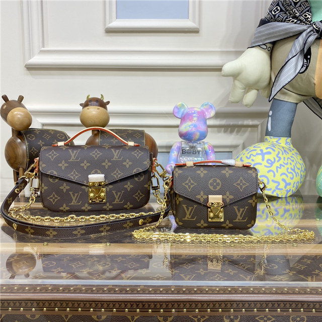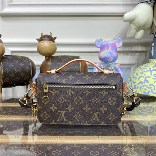 Made from Monogram canvas with natural cowhide-leather trim and the S-lock signature, the Pochette Métis East West bag combines emblematic House cues with new contemporary details like a gold-color chain for fashionable short-shoulder carry. Roomy enough to store an iPhone 13, it has three inside compartments, a zipped pocket inside, and another outside.