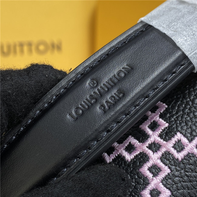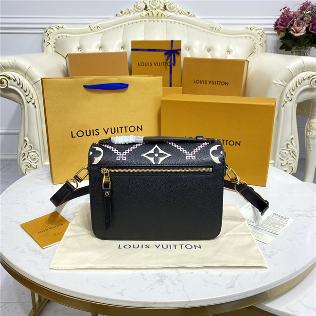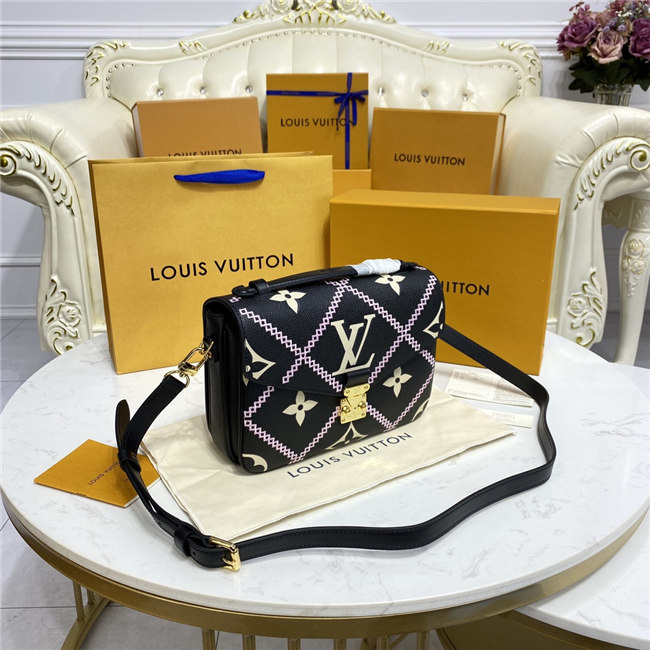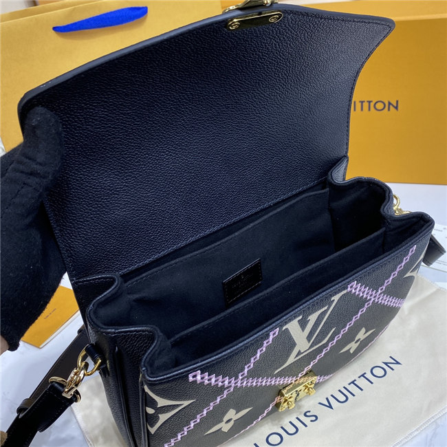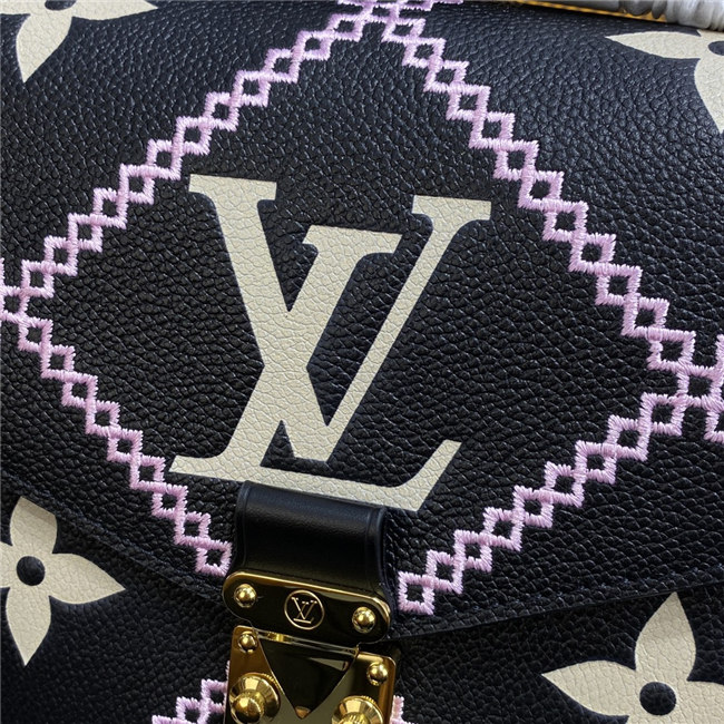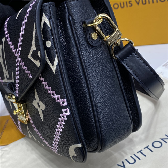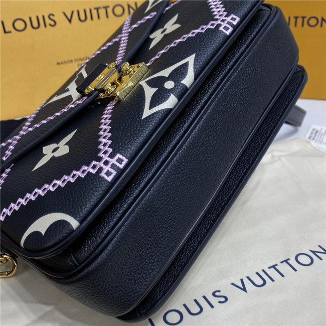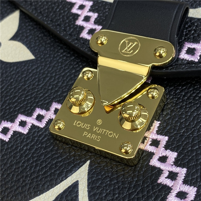 For Spring 2022 the Pochette Metis handbag in Monogram Empreinte leather is embellished with embroidery inspired by the quilted linings of original Louis Vuitton trunks. House craftsmanship shines in the colors and textures of the stitching against a background of embossed leather. This versatile statement piece features a convenient top handle and a removable cross-body strap.
