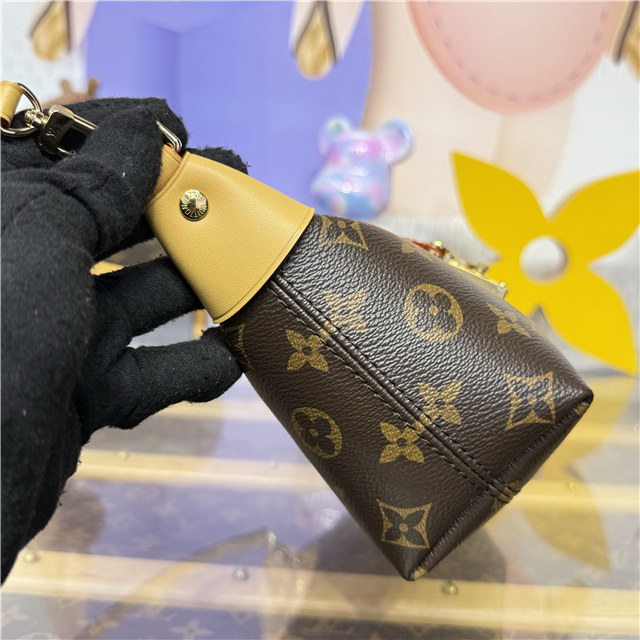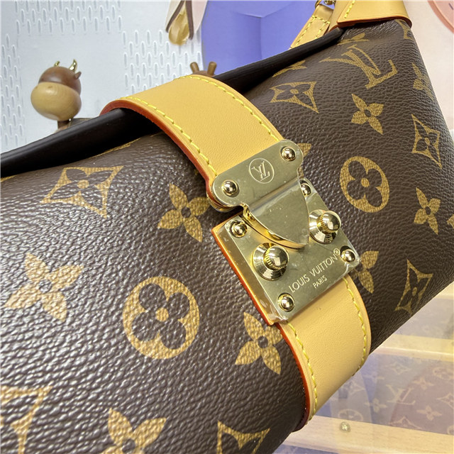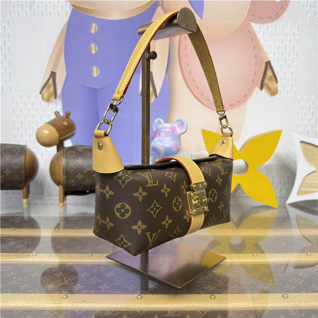A sophisticated day-to-evening style, the Pochette Mia belongs to the House’s Monogram collection. Designed from canvas decorated with the emblematic pattern, this edition is trimmed with cowhide leather and features a signature gold-toned S-lock. It is sized to fit everyday essentials and can be worn over the shoulder or carried by hand.
