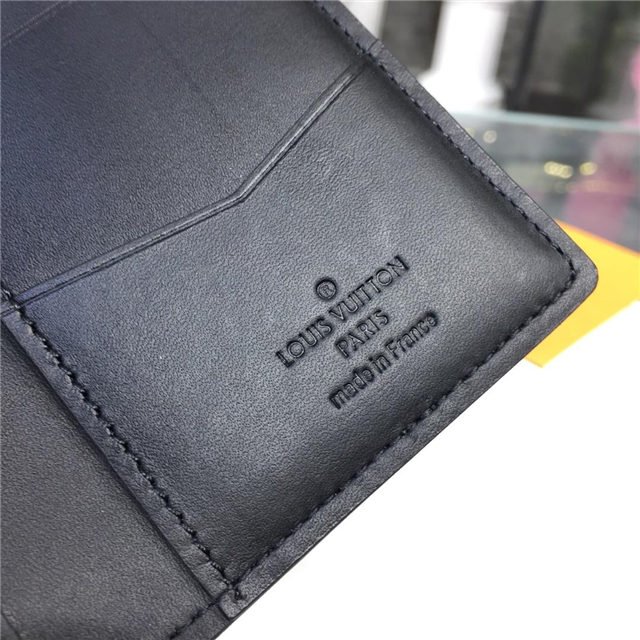 The Pocket Organizer comes in Dark Infinity leather, which featured at Louis Vuitton”s Fall-Winter 2018-19 men”s fashion show. This supple black calfskin is embossed with the Louis Vuitton signature. The Pocket Organizer is an extremely compact wallet offering a variety of pockets and credit card slots.