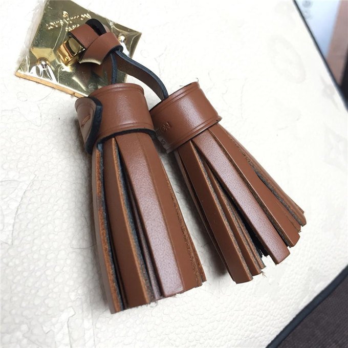 Fashioned from embossed Monogram Empreinte leather, this edition of the Saintonge handbag is detailed with playful tassels and shiny golden hardware. Sized to fit a woman’s daily essentials, this compact model transitions easily from day to evening, either carried by the supple top handle or suspended from the adjustable shoulder strap.