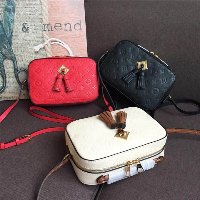 Louis Vuitton Saintonge Monogram Empreinte Leather Creme Caramel