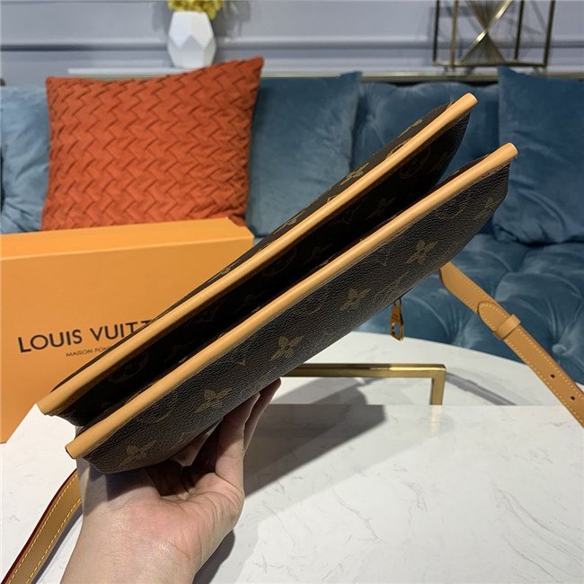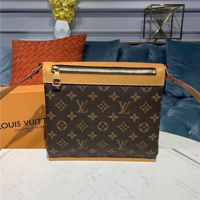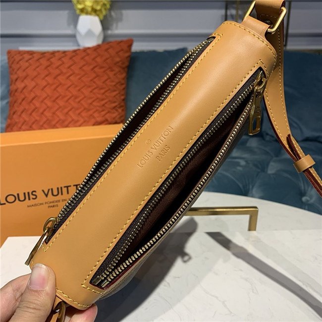 This small crossbody Saumur Messenger PM bag in Monogram canvas and natural leather, with its two outside compartments, defies convention. The adjustable leather strap with shoulder pad ensures comfortable carry. Part of Virgil Abloh’s Monogram Legacy theme, it’s a tribute to Louis Vuitton’s historic design.