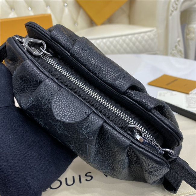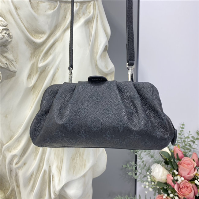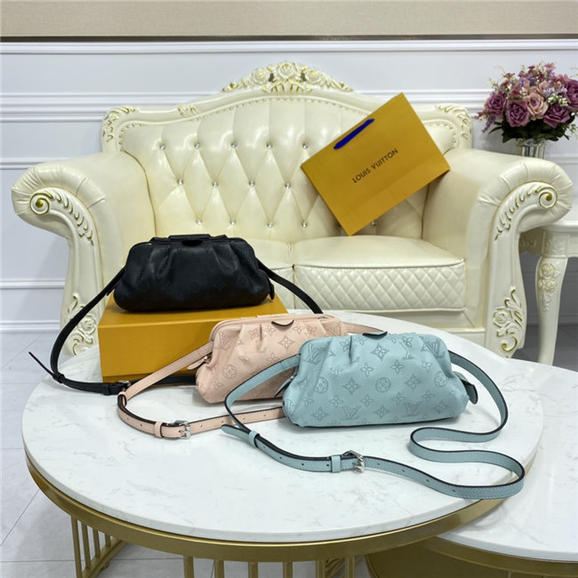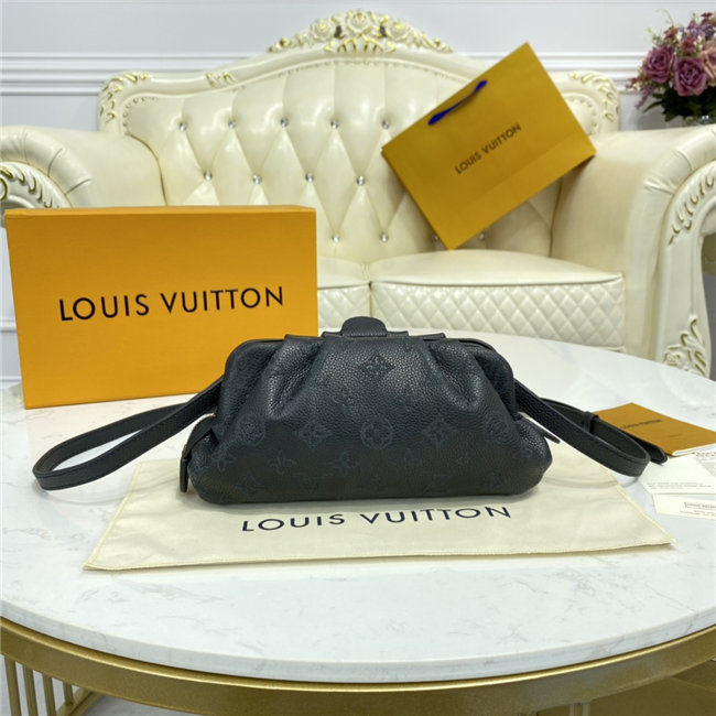 The Scala mini pouch has a soft, body-friendly shape inspired by the folds and pleats of drapery. It is crafted from supple Mahina calf leather, whose delicate perforations replicate Louis Vuitton”s iconic Monogram pattern. Large enough to hold everyday essentials, it has a removable, adjustable strap, enabling it to be carried in several different ways.