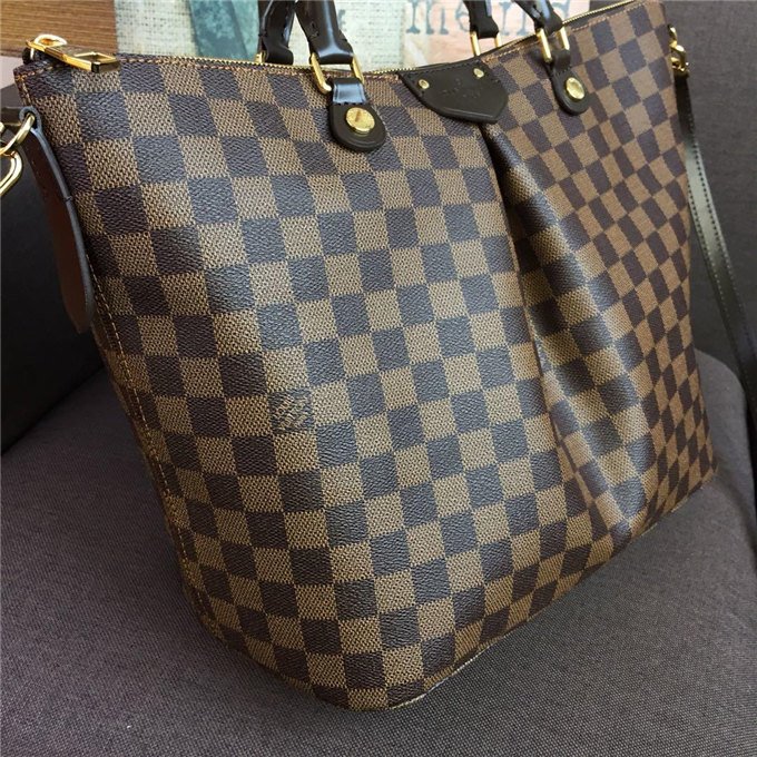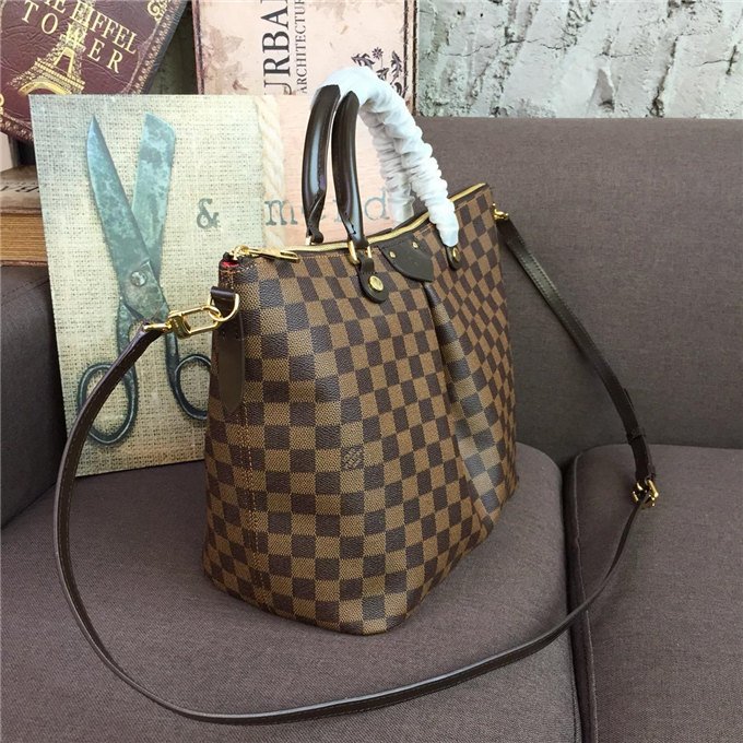 Introducing the new Siena in distinctive Damier canvas, an elegant go-everywhere bag for busy lifestyles, offered in three complementary sizes. Light, supple and body-friendly, the Siena is designed to be carried with ease, all day long. The spacious, well-organized interior keeps belongings visible and organized, while the combination of Toron handles and removable strap enable a host of carry options. Note the embossed leather patch on the bag’s front: a heritage touch, it evokes the drawers of antique Vuitton trunks.