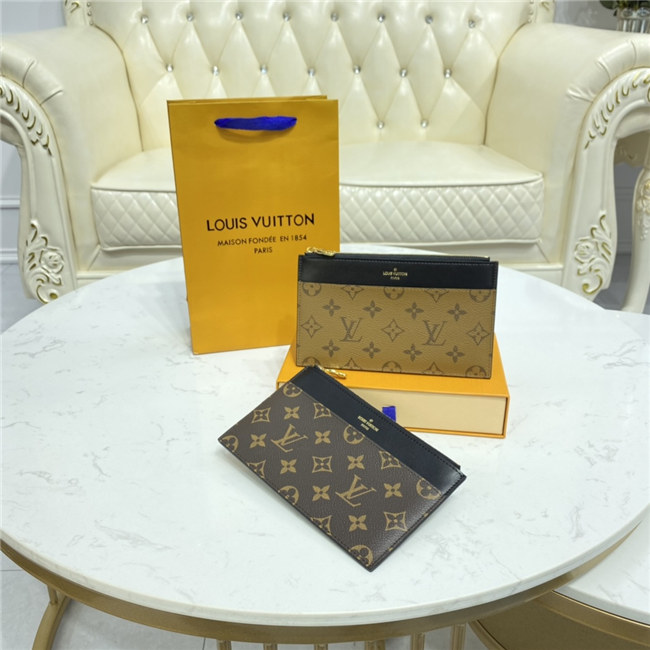 The Slim purse is a chic, streamlined design which can be carried in the hand or slipped inside a bag. It combines Monogram canvas with smooth cowhide leather, embossed in gold with the Louis Vuitton signature. In addition to its zipped main compartment, it offers an outside flat pocket, two outside compartments and six card slots.