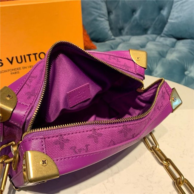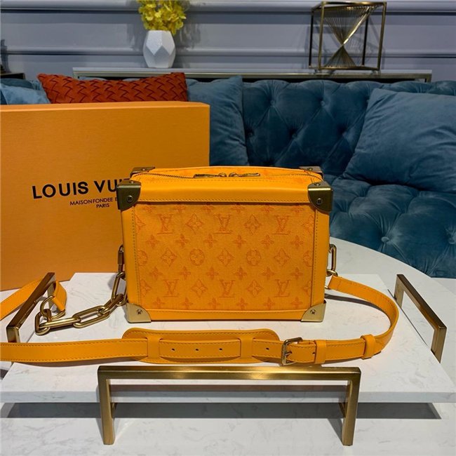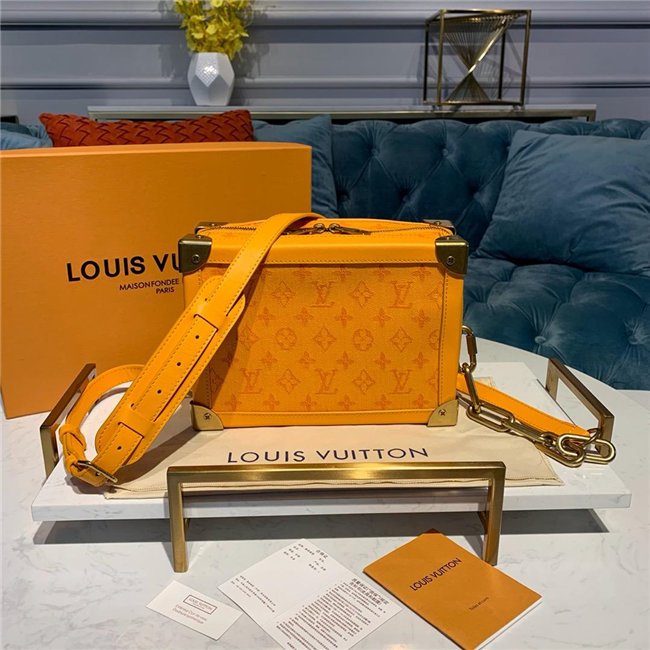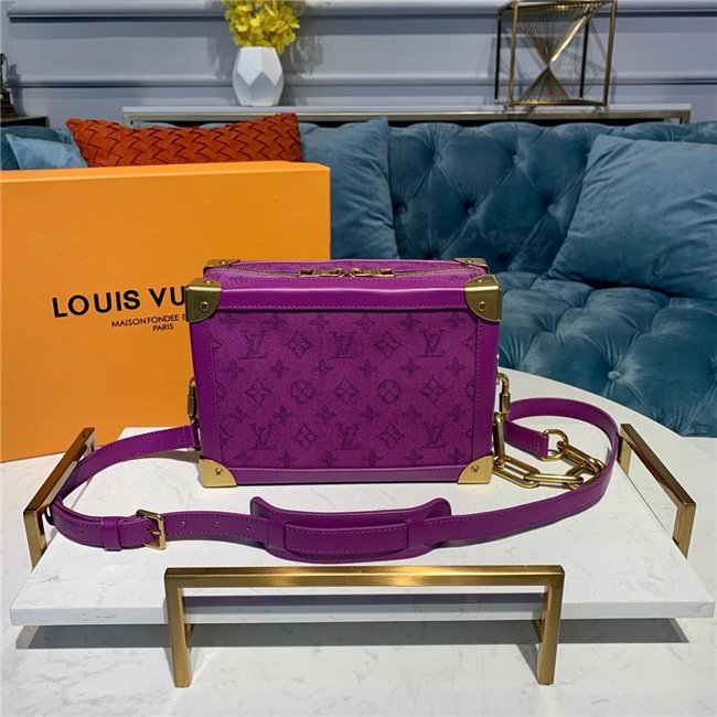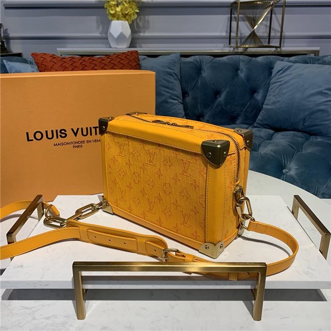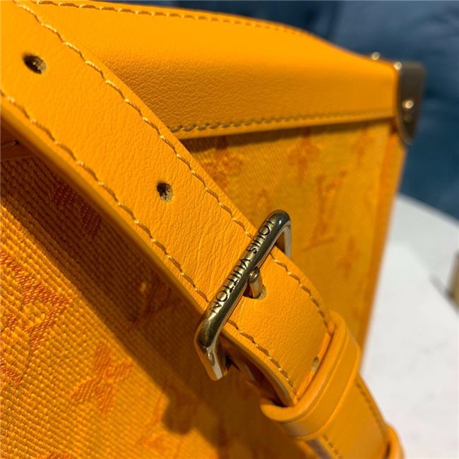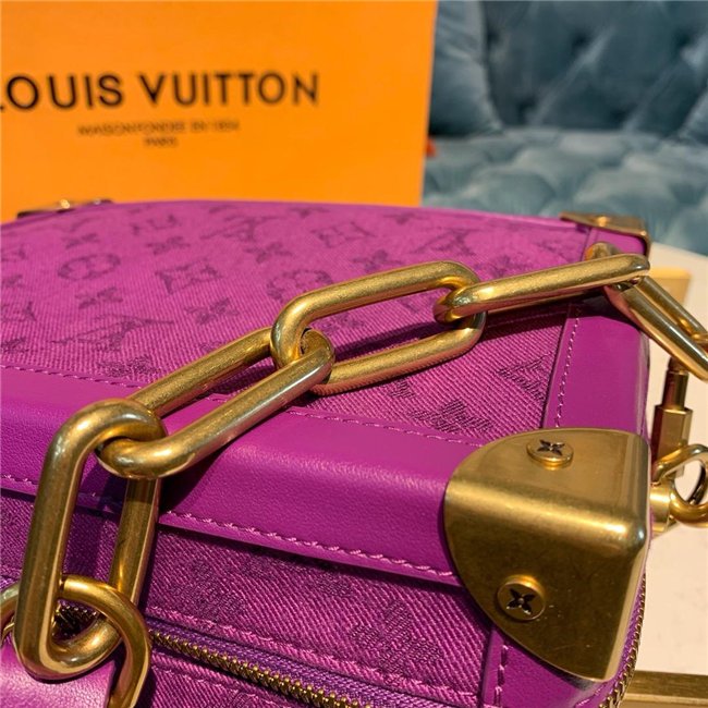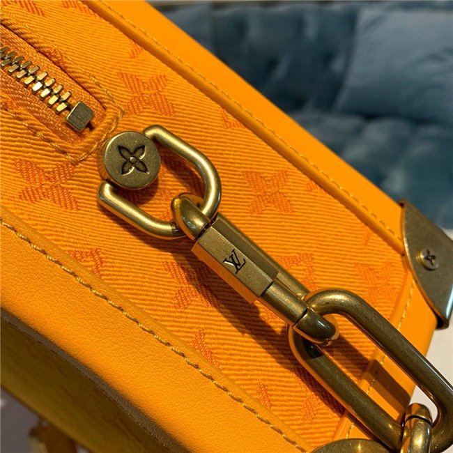 The Soft trunk, which references the House”s luggage-making heritage, makes a stylish and practical accessory. Crafted with denim fabric, it exudes modern appeal, while the discreet allover Monogram pattern and contrasting gold-tone hardware lend a refined note. Practical features include a well-organized interior with inside pockets and an adjustable strap for shoulder carry.