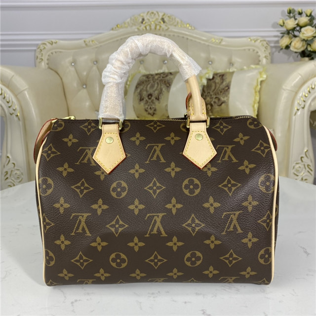 Crafted from supple Monogram canvas, the Speedy 25 is an elegant, compact handbag, the ideal companion for city life. Launched in 1930 as the “Express” and inspired by that era”s rapid transit, today’s updated Speedy remains a timeless House icon, with its singular silhouette, rolled leather handles and engraved signature padlock.