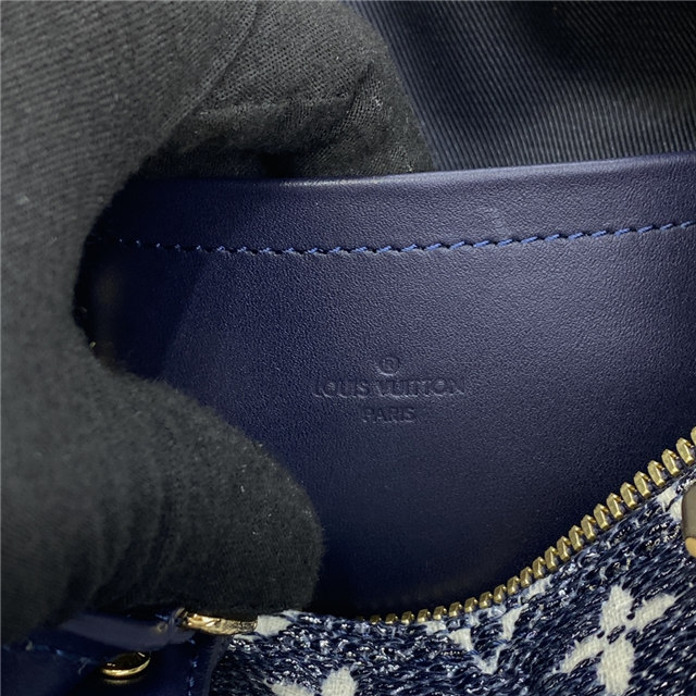The eye-catching Speedy Bandoulière 20 handbag hails from the season’s Monoglam animation. It is crafted from Monoglam jacquard canvas woven from cotton, then laminated for a metallic shine. What’s more, the material’s holographic blue tint reflects changes in light, creating novel chromatic variations. Navy leather trim adds a sculptural effect to this statement Speedy.